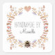 Etiquetas elegantes e estilizadas de produto de quadro floral, de cor suja, com o nome do fabricante dentro de uma bonito floral estilizada com coração e abelha cor-de-rosa.