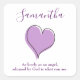 Um adesivo bonito para as suas necessidades de artesanato, este item apresenta um fundo branco com um coração roxo no meio. Acima do coração está seu nome enfeitado em tinta roxa e cursiva. Abaixo está "Tão adorável quanto um anjo, adorado por Deus é o que você é" escrito em fontes complementares. Poema: ©2019 Uchechukwu Nwosu