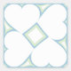 Este adesivo apresenta um padrão de quatro corações brancos ao redor de um diamante central esboçado em uma cinza sobre um fundo azul claro.