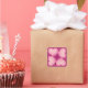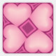 Este adesivo tem quatro corações cor-de-rosa com um centro lavado em branco ao redor de um diamante central esboçado em rosa sobre fundo de ameixa.