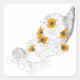 Ilustração de uma cornucopia com abóboras, peras, folhas de maple e girassóis, com apenas as pétalas de flores coloridas em amarelo-ouro.