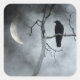 Um bonito corvo místico à noite olhando para uma lua crescente.