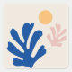 Folhas modernas de Abstrato - Formas cortadas em azul, amarelo mostarda e bege.