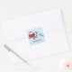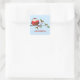 Ilustração adorável de uma coruja marrom de desenho animado vestindo um cachecol bolinhas vermelho, empoleirada em um galho de árvore em um fundo azul de neve. Perfeito como etiquetas de presentes, selos de envelopes, etc