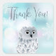 Uma coruja fofa em um turquesa, luzes de fundo e flocos de neve para um chá de fraldas de inverno. Com um obrigado você escreve um texto num elegante roteiro manuscrito.