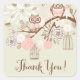 Adesivo Quadrado Corujas Rosa Russas e Birdcages Obrigado Sticker
