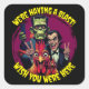 The perfect Cheesy Chicken Selfie... with a cryptid photobomb for the ages. Two birbs posing, Dracula working the camera, and poor Frank just trying to enjoy his coffee chair—only to realize he's in the shot too. Having a blast, wish you were here. This glossy paper sticker is for anyone who loves a good monster mash, a little chaos, and friends who never miss a photo op.