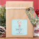 Feita com adesivos de cozinha amorosa com um design adorável com uma ilustração de aquarela. Um balão de ar quente decorado com flores bonito, vermelhas e rosa. Um pequeno ursinho branco giro sentado na cesta. Fundo azul claro.