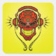 Adesivo Quadrado Crânio de DJ - Vermelho e Amarelo