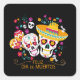 Adesivo Quadrado Crânios e flores de açúcar de festa
