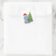 Adesivo Quadrado Cranky Grey Tabby Cat Red Hat Christmas Tree