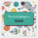 Um Padrão Espacial Exterior Colorido, Cute, com Espaço Exterior, astronauta, espaçonave, satélite e foguete em cores ousadas e divertidas. Perfeito para etiquetas personalizadas para livros, revistas e etiquetas de material escolar.