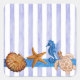 Cor d'água original pintada por Sandra Gale, com peixes-estrela, cavalos-do-mar, tartarugas e conchas sobre um fundo de listras azuis verticais translúcidas. design de excelente para o Verão, casas de praia, bangalôs ou para quem ama a praia, o oceano ou o peixe.
