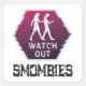 Um design legal e engraçado com duas pessoas caminhando assistindo em seus smartphones como zombies e a citação "Cuidado com os Smombies".