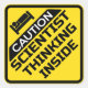 ADESIVO QUADRADO CUIDADO UM CIENTISTA ESTÁ PENSANDO DENTRO