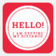 Vestido vermelho de casamento à distância social. Ajude seus convidados a se sentirem seguros e deixe que outros convidados saibam que você precisa que eles fiquem longe para se proteger a si mesmo ou a seus convidados mais vulneráveis. O autocolante vermelho do código lê Olá! Estou mantendo a distância. Ideal para adicionar a um kit de casamento de segurança antivírus convidado ou kit de eventos. Posters e instruções correspondentes também estão disponíveis. Projetado por www.mylittleedenweddings.com