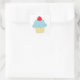 Etiquetas de Cupcake azul. Os adesivos personalizáveis e bonitos têm um cupcake azul com aspernos coloridos com uma cereja no topo.