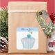 Um cupcake azul suave com glacé azul e rosa e um mirtilo amarelado no topo. Uma borda riscada de azul acentua a palavra ‘obrigado você’ Personalizar alterando as palavras conforme desejado.