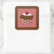 Adesivo Quadrado Cupcake de chocolate em padrão vermelho e branco