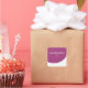 Adicione seus detalhes sobre esta curva roxa e design decorativa impressão branca.