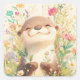 Adesivo Quadrado Cute Baby Otter Smiling in Meadow Flowers