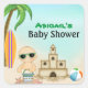 Este adesivo de chá de fraldas de praia apresenta um bebê fofo a beber um limão, parado com um balde de areia, um castelo de areia impressionante e uma bola de praia cercada por palmeiras tropicais. Ele pode ser personalizado com um nome e qualquer texto que você queira adicionar. Alguns gráficos em artwork©delightful-doodles.com e CherylSeslarDesigns.com em DigiWebStudio.com.