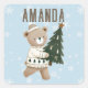 Adesivo Quadrado Cute Bear Christmas Tree Snowflakes Kids Name