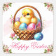 Adesivo Quadrado Cute Chick with Colorful Eggs Happy Easter