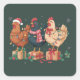 Adesivo Quadrado Cute Christmas Chickens Funny Holiday Farm
