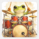 Adesivo Quadrado Cute Frog Drummer Sticker – Funny Music Art