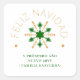 Enhance your holiday celebrations with our elegant square snowflake stickers in faux gold and green, designed with texts in Spanish. Each sticker features a sophisticated snowflake in a charming faux gold finish, complemented by a green background that reflects the essence of the winter season.
