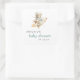 These cute baby shower stickers feature a watercolor teddy bear dressed as an astronaut and riding a rocket ship, above the words "baby shower" in blue-green hand printing font. Personalize the text with the name of the mom-to-be and the date in charcoal gray sans serif.