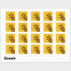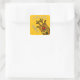 Cute Yellow Reindeer Kid`s Name Christmas Gift Square Sticker. Funny cartoon reindeer with a red nose on rustic a yellow background with white snowflakes. The sticker has a name template - personalize the sticker with your name.