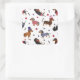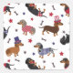Dachês patrióticos vestidos de branco vermelho e azul com estrelas, listras e ossos de cachorro sobre fundo branco.
