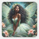 Adesivo Quadrado Dark-Skinned Fairy In Mint Green Botanical