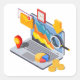 Um laptop com muitos ícones diferentes na tela. Este design parece realmente eficaz neste Adesivo
