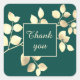 Adesivo quadrado de agradecimento em verde escuro romântico com folhas douradas para cartas chiques, presentes elegantes, casamentos sofisticados, e para aniversários bonitos e para pequenas empresas.