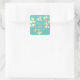 Adesivo quadrado de folhas verdes douradas românti