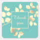 Adesivo quadrado de agradecimento de folhas douradas verde claro românticas para cartas chiques, presentes elegantes, casamento sofisticado, e para lindo aniversário e para pequenas empresas.