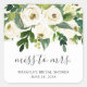 Adesivos de favores de chá de noiva floral com uma borda superior apresentando rosas brancas pintadas à mão com aquarela e folhagens com a mensagem, "De Miss a Mrs" em uma linda caligrafia manuscrita e seu nome, título do evento e data abaixo. Esses adesivos elegantes são perfeitos para uma celebração no verão e são uma ótima maneira de adicionar um toque pessoal aos seus favores.