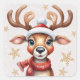 Adesivo Quadrado de Natal com Rena em Aquarela