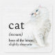 Definição de dicionário para CAT em texto preto sobre fundo de madeira lavada em branco com esboço branco de gato persa