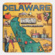Mapa de Delaware com vários fatos interessantes. De uma revista em quadrinhos vintage sobre os 50 estados