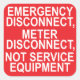 Uma folha de 6, 3" x 3" DESCONECTAR EMERGÊNCIA, DESCONECTAR METER, NÃO SERVIR etiquetas adesivas EQUIPAMENTOS para eletricistas.