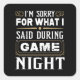 Adesivo Quadrado Desculpe pelo que disse durante o jogo