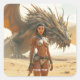 Adesivo Quadrado Deserto de Dragão Menina Fantasy