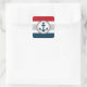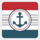 Design náutico com decoração em forma redonda com âncora sobre fundo azul, vermelho, cinza e branco listrado
