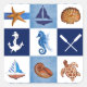 Cor d'água original pintada design por Sandra Gale, com blocos de desenhos temáticos náuticos como peixes-estrela, âncora, navio, tartaruga e conchas. design de excelente para o Verão, casas de praia, bangalôs ou para quem ama a praia, o oceano ou o peixe.