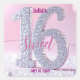 Revele o brilho para o marco dela! Este adesivo deslumbrante Sweet 16 apresenta um magnífico "16" completamente revestido com o que parece ser uma galáxia de diamantes cintilantes, capturando todos os raios de luz. Escrito de forma elegante em magenta vibrante, a palavra "Sweet" flutua graciosamente sobre os números, complementando perfeitamente o fundo rosa suave, uma tela de puro encanto. Todo o texto é totalmente personalizável – personalize facilmente o nome e a data com o nome dela e a data especial. É um abraço personalizado, uma memória tangível que ela irá adorar.