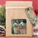 Feliz 4 de julho, EUA! Mostre seu espírito patriótico com esses bonitos adesivos do recuperador de ouros! Design apresenta uma fotografia de dois cães celebrando o Dia da Independência com bandeiras vermelhas, brancas e azuis, gravatas arcos e bandas de imprensa.